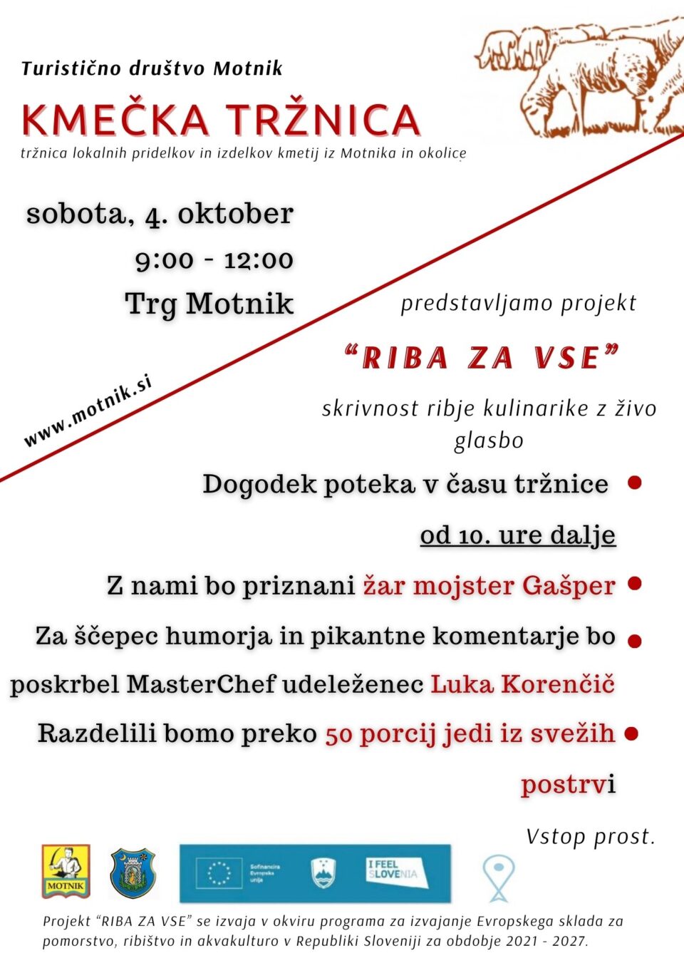 Turistično društvo Motnik vabi na decembrske dogodke v sklopu Kmečke tržnice, kjer boste lahko nakupili lokalne pridelke in izdelke kmetij iz Motnika in okolice ter uživali v prazničnem vzdušju. 9.00 – 12.00Prireditveni prostor Motnik 6. december – Adventna tržnica Na adventni tržnici vas čaka:- praznična ponudba izdelkov- gostujoči ponudniki- številna praznična presenečenja 20. december –…